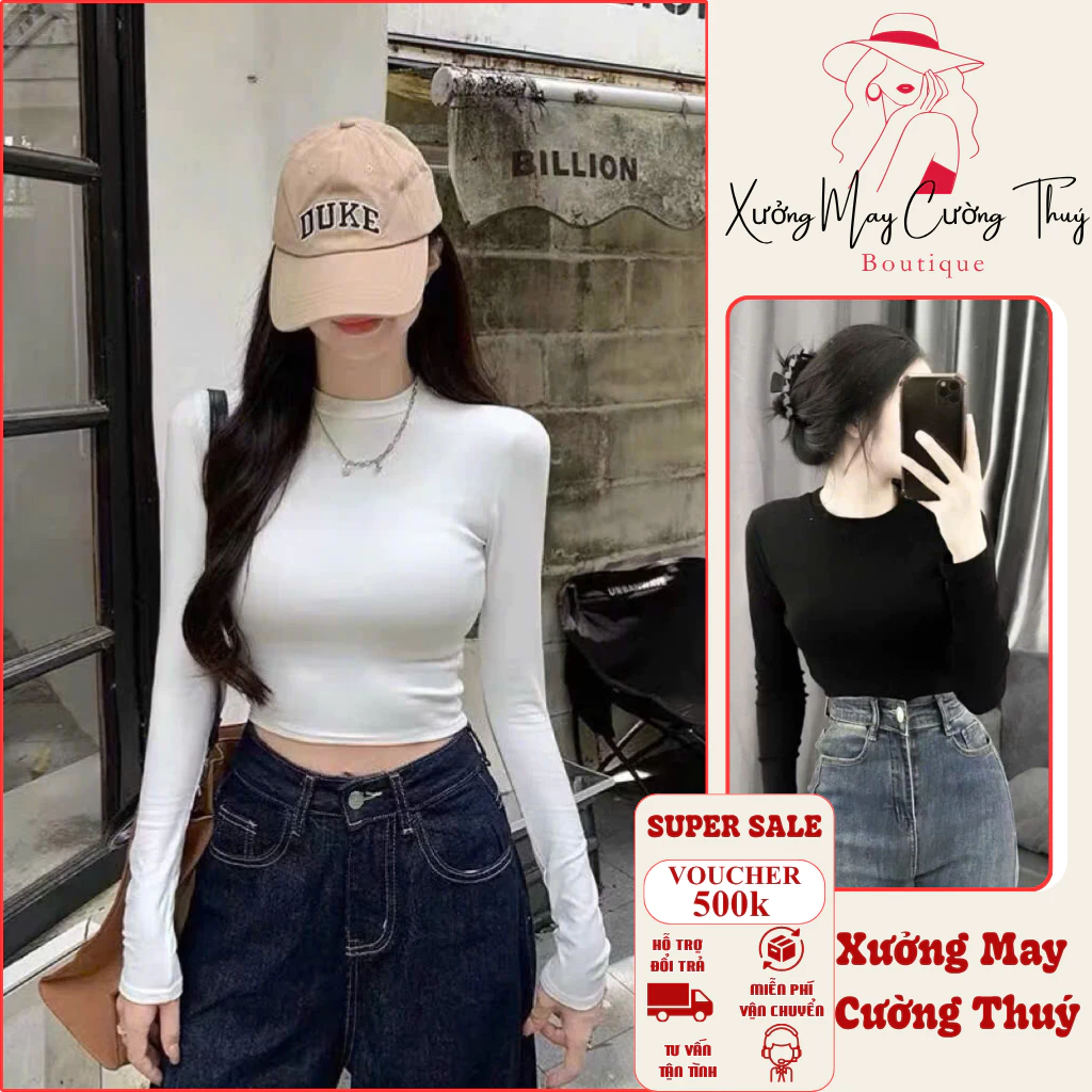 Áo Thun Cổ Tròn Dài Tay Thun Gân khoe dáng gọn gàng